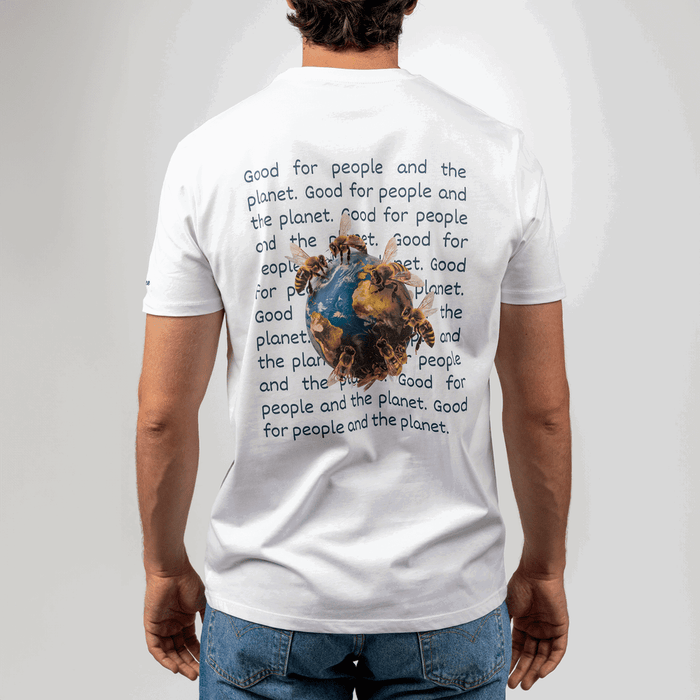 Das BeeShirt wird nachhaltig und ohne den Einsatz tierischer Elemente in Portugal produziert. Aus GOTS-zertifizierter Bio-Baumwolle gefertigt, bietet es ein besonders angenehmes Tragegefühl und macht es zum idealen Begleiter. Pro BeeShirt wird ein Quadratmeter Blühfläche in der Schweiz in Zusammenarbeit mit BienenSchweiz gespendet.
