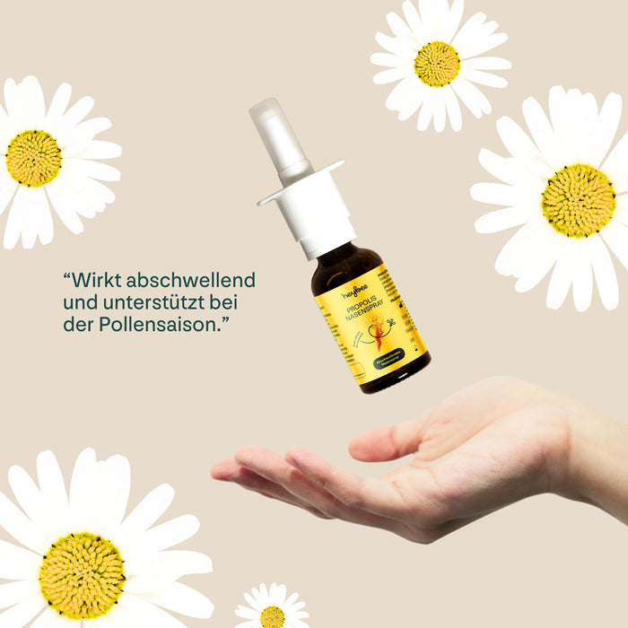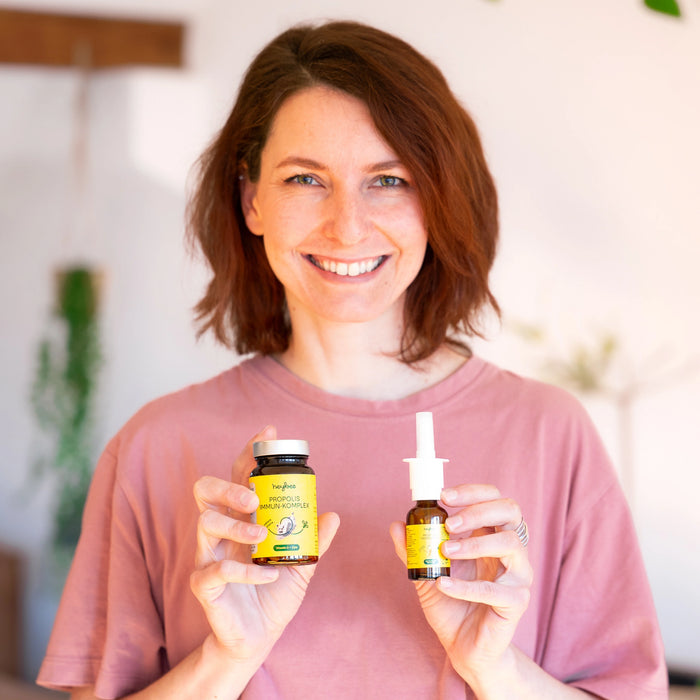 Ce kit vous accompagne et vous soutient pendant la saison des pollens. La propolis est riche en flavonoïdes et peut réduire la libération d'histamine en cas d'allergie au pollen, ce qui peut contribuer à atténuer les symptômes du rhume des foins tels que les démangeaisons, le nez qui coule, les éternuements fréquents et les yeux larmoyants.