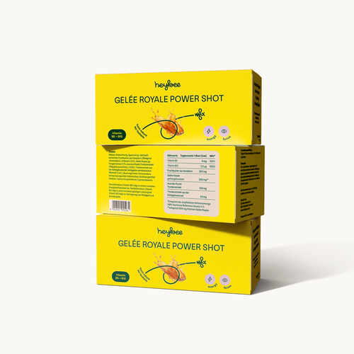 3 paquets de power shots de gelée royale pour plus de performances.