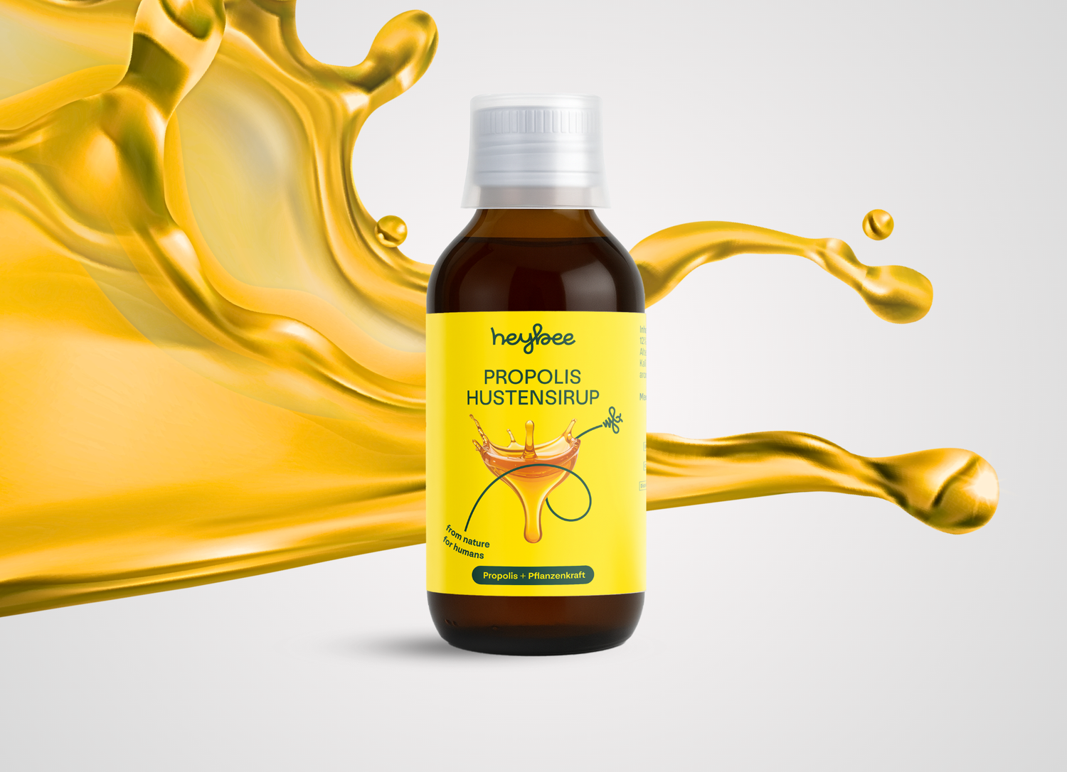 Der heybee Propolis Hustensirup lindert Hustenreiz, schützt die Schleimhäute und unterstützt die natürliche Schleimlösung – mit einer pflanzlichen Rezeptur und mildem Orangenaroma, ideal für Kinder ab 2 Jahren und Erwachsene.